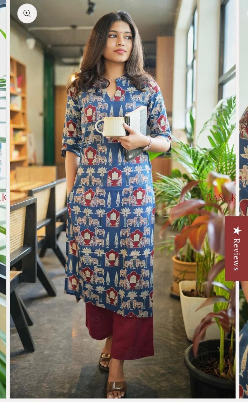 The kurti features a distinctive design that sets it apart, whether through elegant prints, subtle detailing, or refined stitching. Paired with matching bottoms, this coordinated set creates a graceful and effortlessly stylish look.